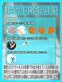 新型コロナウイルスの感染拡大に対しての 当店COCOの取り組みついて ? 当店ではキャストはもちろんスタッフやドライバーの 『手洗い』『うがい』『マスク着用』を徹底させています。 ? 出勤前に『検温』をし体温37度以上の者 『咳』慢性的に出ている者 『体調不良』などの女性キャスト、全スタッフ一切出勤させておりません。 ? 使用される備品、事務所・待機所内にある 手が触れるものをすべて消毒しております。 これにはアルコール消毒ではなく、次亜塩素酸で消毒を実施しております。 ? 外国人のお客様のご利用は当面お断りしております。 ■割引情報 この現状を踏まえまして、 新型コロナウイルスの収束の間 栄町から10km県内でのご自宅でのご利用の場合は ご自宅出張料と交通費を無料にてご案内させていただきます。 圏外でのご利用の場合でもご自宅出張料は無料でご案内致します。 ご自宅に出入りさせていただく 女性キャスト、スタッフにも消毒を徹底しておりますのでご安心下さい。 お客様が安心してサービスを受けて頂く為に、 これからも対応を徹底してまいります。 ご理解の程、よろしくお願い致します。 |