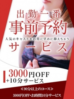◆狙え!一番枠!事前予約特典!◆ 遂に復活!事前予約割引! 前日20時迄の予約対象! 前日に『一番枠』を狙え!♪ 気になる奥様の出勤を見つけたなら お得に抑えちゃいましょう!! 『戦いとは、いつも二手三手先を考えて行うものだ』 By赤い人 ≪90分以上のコース≫ 3000円OFF+お時間10分サービス 割引割引割引割引!! 割引割引割引割引!! ?※本指名は対象外となります ※メルマガ会員登録が必要となります。 ※メルマガの『合言葉』お伝え下さい。 ※出勤から『30分以内』の一番枠対象です。 ※松戸・北松戸・馬橋・新松戸の駅近くのホテル限定です ※前日の受付時間の20時までのご予約が適用になります ※その他の割引と併用不可 ※チェンジ・キャンセル不可 ※ポイント併用不可 全ての割引はメルマガ『合言葉』から! メルマガを受信する https://www.hips-matsudo.jp/mailmagazine.html 毎日配信のメルマガの『合言葉』を 予約時にお伝え下さい! |